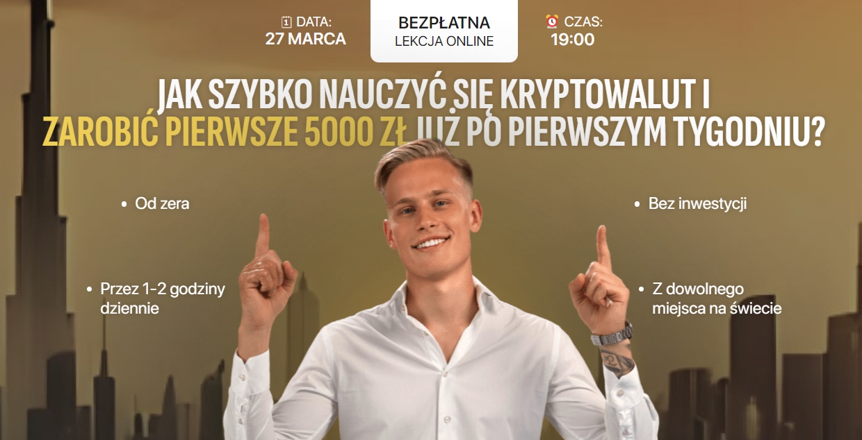 Kryptowaluty to dla Ciebie idealna opcja! Z dowolnego miejsca na świecie, a w dodatku z telefonu możesz zarabiać nawet od 5.000 zł. Na lekcji online ujawnię 13 sposobów zarabiania na krypto zarówno z inwestycjami, jak i BEZ inwestycji, które działają od zaraz.